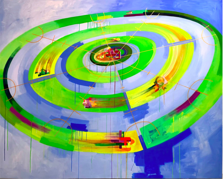 Emily Cheng's work, combining semiotics and visual imagery, portrays and constructs spiritual connections between humanity, nature, and the cosmos, embodying her pursuit of human origins and the essence of the universe. Her artworks are characterized by their simplicity and abstraction, vibrant and luminous colors. Arrangements of points, lines, and various geometric shapes have become characteristic, with compositions that exude order through meticulous rationality. Color layouts and variations create a sense of temporal depth and spatial breadth. The artworks pulsate with the dynamism of celestial bodies, unfurling a grand serenity. Through the art's use of negative space and color tones, we can sense an aura of Eastern aesthetics. Gazing at her works, we may experience spiritual strength, comfort and childlike joy.